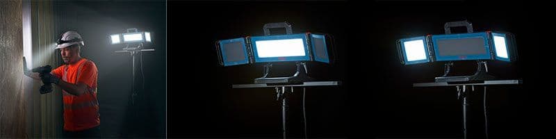 En kraftig lampe med SMD-teknikk. Belysning fra tre ulike lyskilder som kan vinkles for best mulig effekt. Velg selv om du vil bruke hovedpanelet i midten, eller bare sidepanelene. Sidepanelene kan felles sammen og stativet vinkles opp slik at lampen blir liten og hendig å transportere. Støtsikker IK08. Utstyrt med et ekstra strømuttak bak.