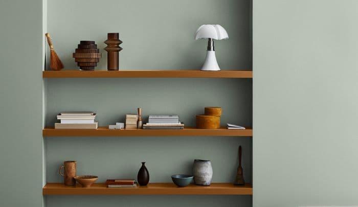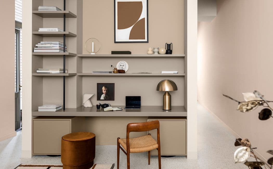 Noen ganger vil du løfte fram detaljer – som hyllene i bildet under. Mens i andre rom vil du skjule eller dempe inntrykket. Her har vi malt skapdørene på soverommet i samme farge som veggen, slik at skapet blir en diskret del av veggen.