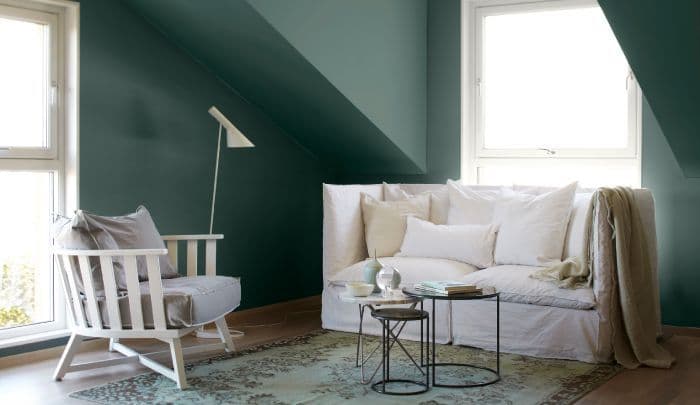 Ved å fargesette taket i samme farge som veggene, viskes overgangen mellom de ulike flatene nesten helt ut. På denne måten kan du skape en god og lun atmosfære i rommet.