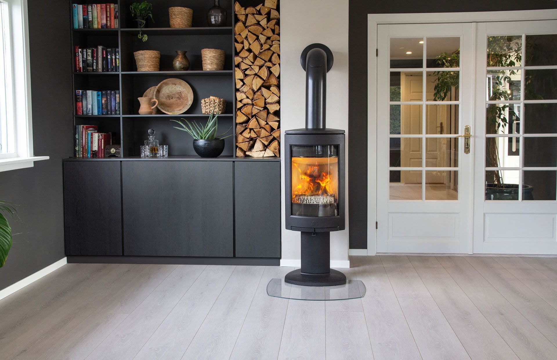 - Valget vårt av vedovn landet på Jøtul, nærmere bestemt vedovnen Jøtul F 373 Advance. Vi har hatt Jøtul tidligere og har vært veldig fornøyde med det. Vi ønsket oss en tidløs og rentbrennende vedovn som gir god varme. At den også halverer vedforbruket i motsetning til den gamle peisen, er et kjempepluss i disse tider med høye strømpriser, forteller Herman.
