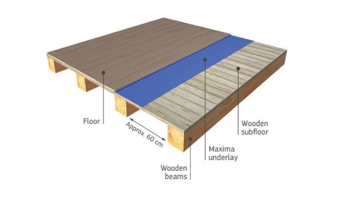 - Her kan parkettunderlaget Maxima anbefales, blant annet fordi det har god densitet som reduserer bevegelser i gulvet. Det er også best valg i etasjeskiller.