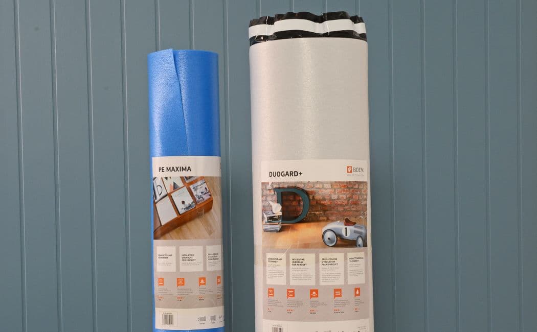 Bilder over: Legging av parkett med Maxima gulvunderlag og legging på Boengard gulvunderlag. Foto: BOEN