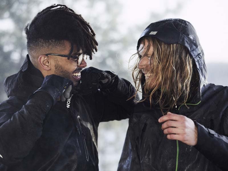 - En vanntett og pustende skalljakke ytterst for å gi beskyttelse mot vind og vann.