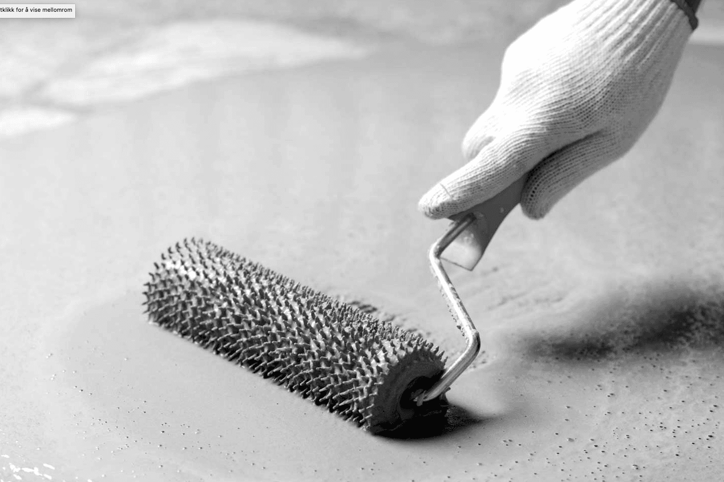 - Utblanding og påføring: Bland avrettingsmassen med vann iht. instruksjonene. Hell og fordel massen jevnt med egnet redskap, som tannsparkel eller piggrulle.